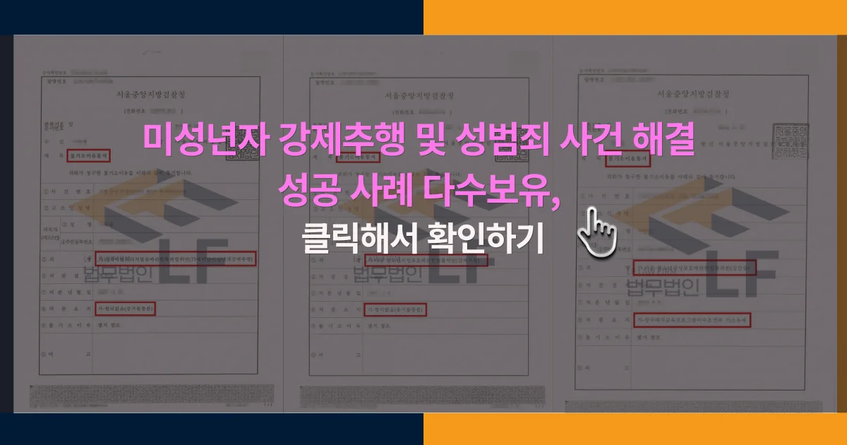 결국 이 사건의 핵심은 형법상 강제추행죄 성립요건, 아청법 적용 가능성, 무혐의 주장이 가능한 사안인지, 일부 사실을 인정하고 선처를 구해야 하는 사안인지를 구분하는 데 있습니다.
