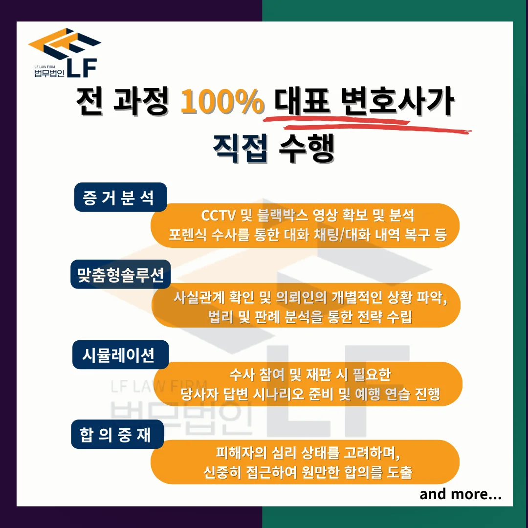 이러한 경험을 바탕으로 단순한 법리 설명이 아니라, 사건을 어떤 구조로 정리해야 하는지와 실제 수사 흐름에 맞는 대응 방향까지 구체적으로 설계해 드리고 있습니다.