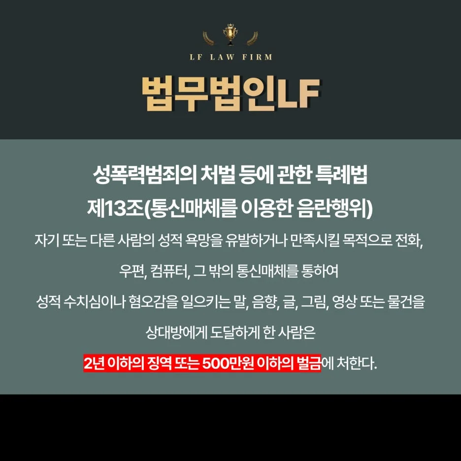 한 통계자료에 따르면 2019년 1분기에 발생한 통신매체이용음란 사건은 290건, 2021년 1분기 발생한 통신매체음란죄 사건은 539건으로 범행이 확연히 늘어난 것을 알 수 있다 하였습니다. 이렇게 급증하고 있는 통매음 범죄가 인정된다면 2년 이하의 징역형 혹은 2천만원 이하의 벌금형으로 장난의 이유였다 하여도 실형에 처할 수 있는, 결코 만만히 봐서는 안될 사건이라 하였습니다. 더욱이 성범죄 사건의 경우 신상정보가 등록되고 취업 제한 대상자가 될 수 있는 만큼 인생을 송두리째 날려버릴 수 있는 처벌에 준하는 사안으로 가급적 주의하시는 것이 좋다 하였습니다. 또한 통매음 신고를 당한 상황이라면 대리인을 통해 피해자와 원만히 합의하시어 사건을 마무리하시는 것이 필요하다고 하였습니다.