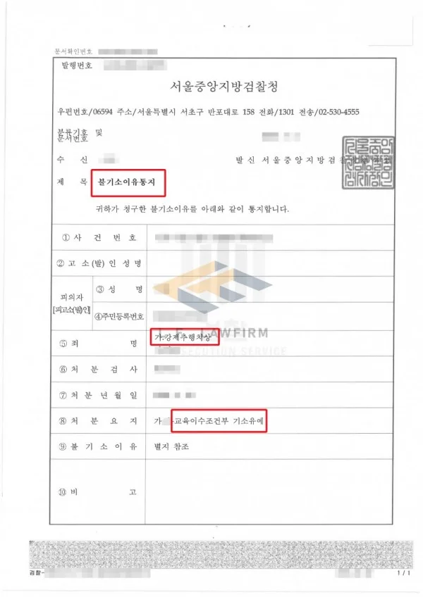 [성공사례] 강제추행치상죄 교육이수조건부 기소유예처분