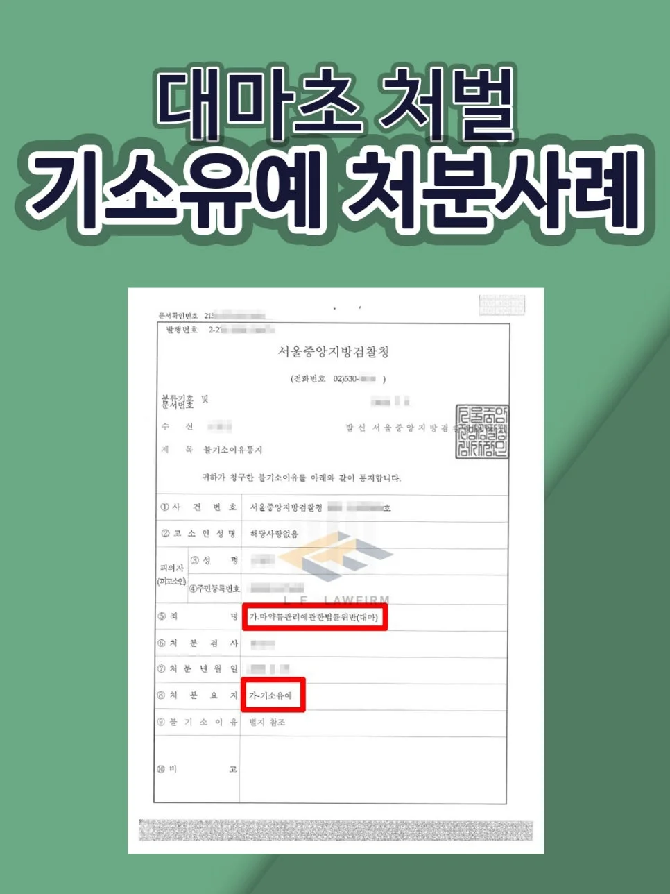 마약은 불안, 우울과 같은 심리적인 부분에도 문제를 일으키는 것은 물론 판단력, 기억력, 인지능력에도 상당한 부작용을 일으키고 있어 전세계적으로도 예민하게 다뤄지고 있는 문제입니다. 만일 마약 사건과 관련하여 수사기관의 조사를 받게 되는 상황이 오셨다면 신속히 법조인의 조력을 받으시기 바랍니다.