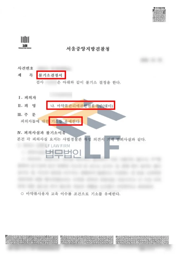 마약류관리에관한법률위반 기소유예 처분사례
