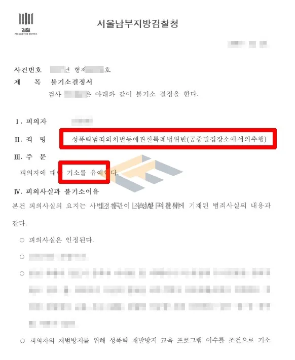 의뢰인은 아침 출근길 혼잡한 마을버스를 이용하던 중 마을버스에서 하차하는 피해자의 허벅지를 손으로 만져 추행을 하였고, 피해자의 신고로 인해 수사기관에서 공중밀집장소추행죄로 조사를 받게 되었습니다.