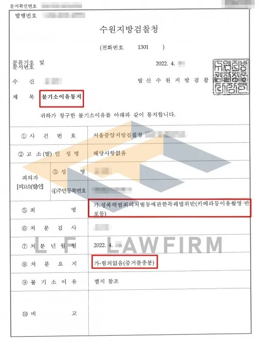 법리적으로 성적수치심을 줄 만한 영상인지 다투는 쪽으로 입장을 정리하며 조사를 받았고 이후 포렌식절차에서도 해당 변론을 하며 사진을 제외하였습니다. 최종 추려진 사진을 바탕으로 담당 검사에게 송치가 된 후 마지막으로 법리적인 부인 변론을 하였고 무혐의 처분을 받을 수 있었습니다.