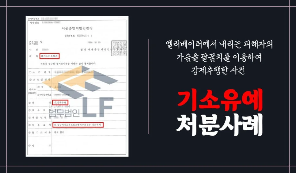 엘리베이터에서 내리는 피해자의 가슴을 팔꿈치를 이용하여 강제추행한 사건