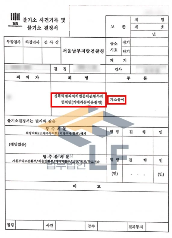 해당 범행 사실에 대해서는 모두 인정을 하고 있었으며, 잘못을 뉘우치고 있었지만, 나날이 증가하고 있는 불법 촬영 혐의로 처벌을 면하는 것은 불가피한 상황이었습니다. 그러하여 변호인은 의뢰인과 조사 입회하여 담당 수사관과의 면담을 통해 피해자의 피해회복이 가능한지의 여부를 확인한 뒤 피해자 변호사를 통해 합의를 이끌어냈으며, 의뢰인에게 전달받은 양형자료를 토대로 변호인 의견서를 작성하여 수사기관에 제출하여 기소유예 처분을 받게 되었습니다.