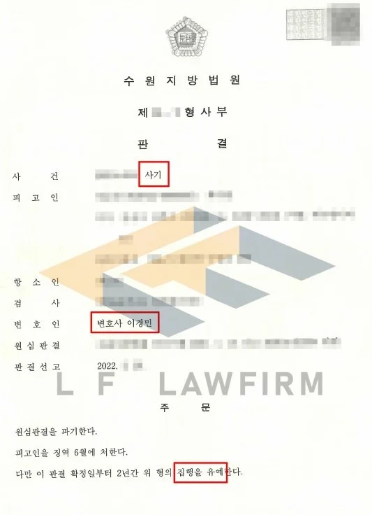 의뢰인이 계속 무죄를 주장하였을 때 무죄가 나올 수 있는 상황인지 여부를 확인해 보았고, 기망의 정도와 증거가 명백하여 부인하는 것보다는 인정하는 쪽이 맞는 것 같아 공소사실 입장을 다시 정리하였고 이후 피해 회복을 위한 절차를 진행하는 동시에 양형자료를 안내하고 진성성 있게 반성하고 있다는 것을 잘 전달 될 수 있도록 하였습니다. 그리고 선고 기일을 앞두고 피해자와의 합의가 되어고 그 합의서를 제출하여 최종 집행유예 판결을 받아 구속을 면할 수 있게 되었습니다.