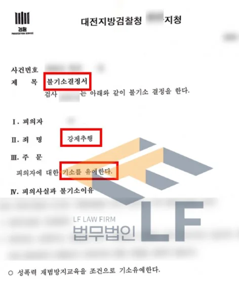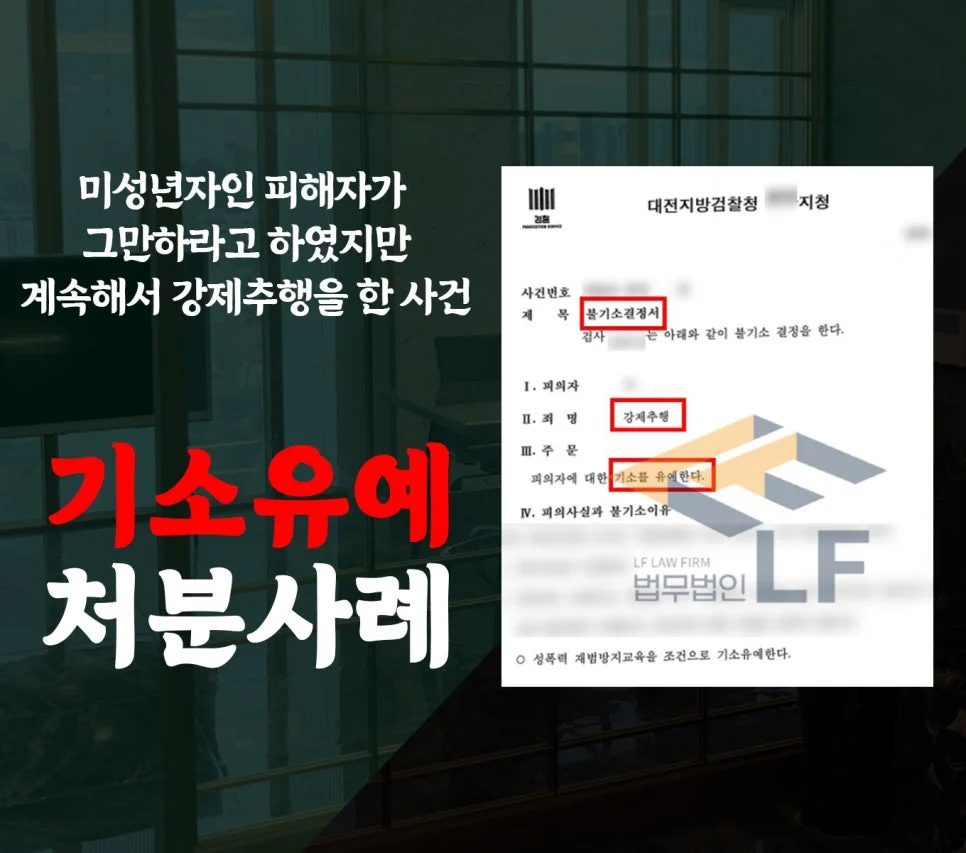 사건 담당 변호사는 의뢰인이 피해자가 미성년자였음을 몰랐다는 사실을 입증하기 위해 어떤 계기로 만나게 되었는지를 구체적으로 나열하였습니다. 또한 피해자에게 순조로운 피해회복을 하였고 피해자가 처벌을 원치 않는다고 밝힌 합의서와 재범방지를 위해 성범죄 예방 치료 교육을 받을 것을 약속드렸습니다. 그렇게 정상자료들을 토대로 변호인 의견서를 작성하고 제출해 기소유예 처분을 받았습니다.