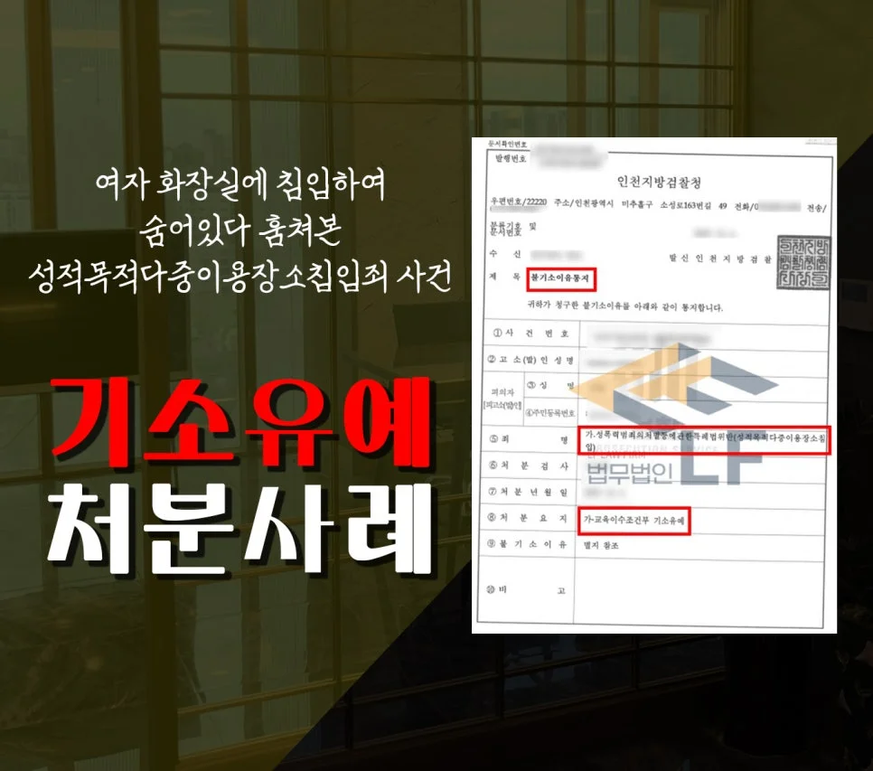 의뢰인은 성적 욕망을 만족시킬 목적으로 오피스텔 3층 여자화장실 침입하여 칸막이 위로 용변을 보는 피해자를 훔쳐보았다는 혐의로 입건이 되었습니다. 의뢰인은 순간적인 호기심을 참지 못하고 범행을 저지른 것에 대하여 잘못을 뉘우치고 있었습니다.