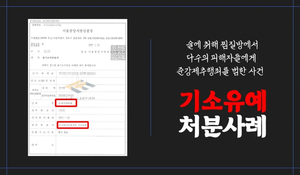 강제추행은 성범죄 사건 중에서 가장 많이 보도가 되는 사건 중 하나인데, 여기서 상대방이 술에 만취하였거나 잠을 자고 있는 상태에서 추행 행위를 하게 되었다면 준강제추행 혐의로 적용이 되어 법적 처벌을 받게 됩니다.