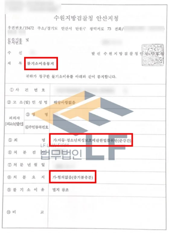 이 사실을 입증하지 못하면 처벌을 받게 될 상황이었습니다. 이 사건을 해결하고자 담당 변호사는 의뢰인이 억울해 하는 부분을 잡아 이를 소명할 수 있도록 진술 내용을 정리하는 조력을 드렸고 경찰조사에 입회하여 피해자의 피해진술을 간접적으로 파악해 그 내용을 토대로 반박하는 내용과 입증자료를 마련하여 피해자의 진술에 신빙성이 어긋나는 점을 주장한 결과 혐의없음 처분을 받을 수 있게 되었습니다.