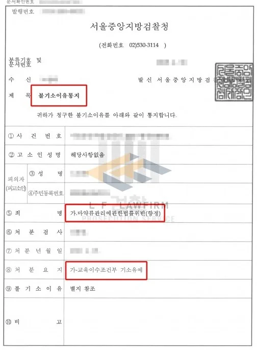 마약 사건이 음지에서 일어나는 특성상 어떻게 마약을 입수를 하게 됐고 제공을 한 사람은 누구인지 등 협조 여부가 중요한데, 초기 경찰 조사 단계에서 진술을 정리하여 구체적인 경위를 말씀드렸고 이후 재범을 방지하기 위해 노력을 기울이며 관련 자료를 정리하여 변호인 의견서 등으로 제출하는 등 불구속 상태에서 진행된 후 최종 원하는 결과를 얻을 수 있도록 조력해 기소유예로 선처를 이끌어 낼 수 있게 되었습니다.