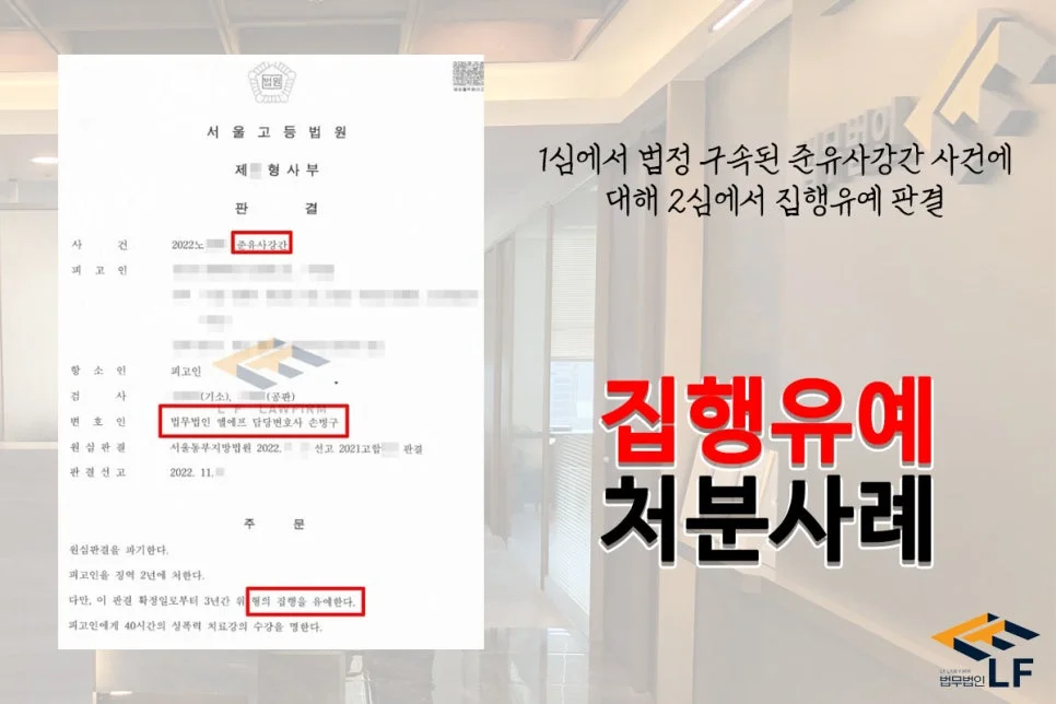1심에서 법정 구속된 준유사강간 사건에 대해 2심에서 집행유예 판결