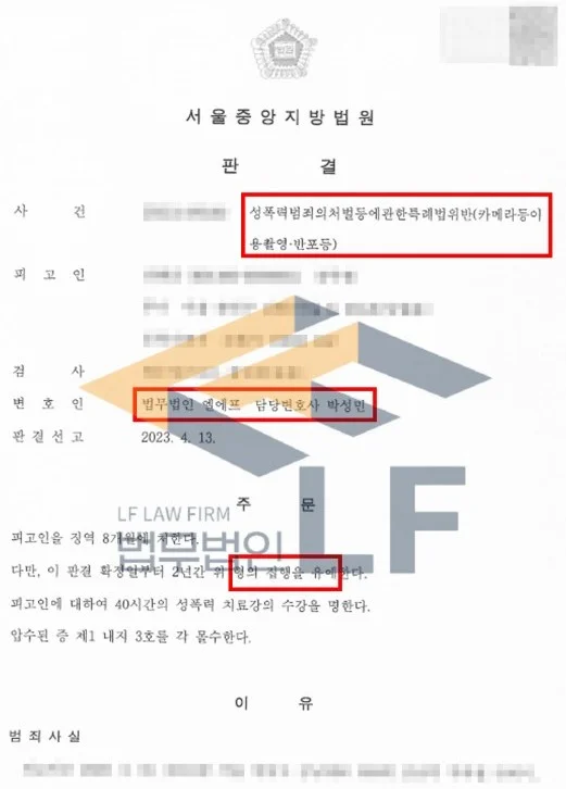 사람의 의사에 반한 촬영 행위는 성범죄에 해당하는 혐의이기에 범죄 행위에 대한 형사 처벌이 확정되면 보안처분까지 함께 따라붙게 됩니다.