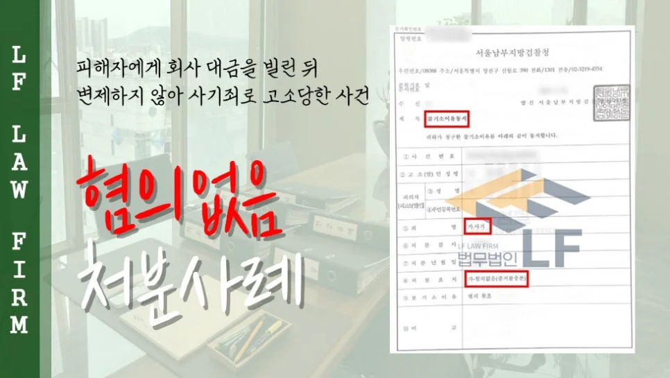 피해자에게 회사 대금을 빌린 뒤 변제하지 않아 사기죄로 고소당한 사건