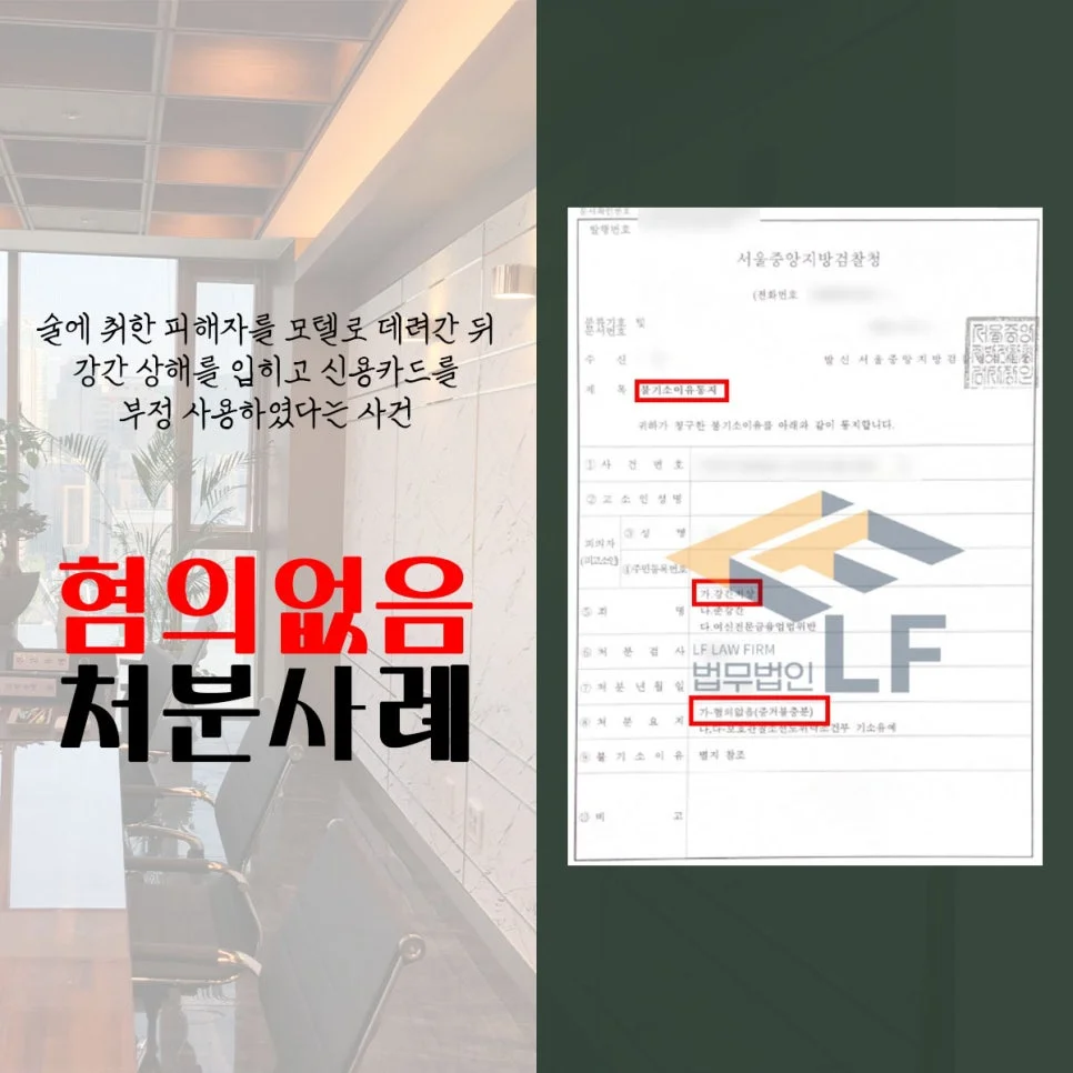 술에 취한 피해자를 모텔로 데려간 뒤 상해를 입히고 신용카드를 부정 사용하였다는 사건