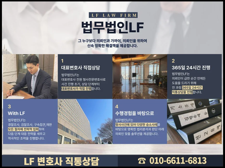 저희 법무법인 엘에프에서는 전문변호사가 엄격하게 사안을 분석한 다음 엄한 형벌에서 확실하게 벗어날 수 있는 올바르고 정확한 맞춤 전략을 안내해드리고 있습니다.