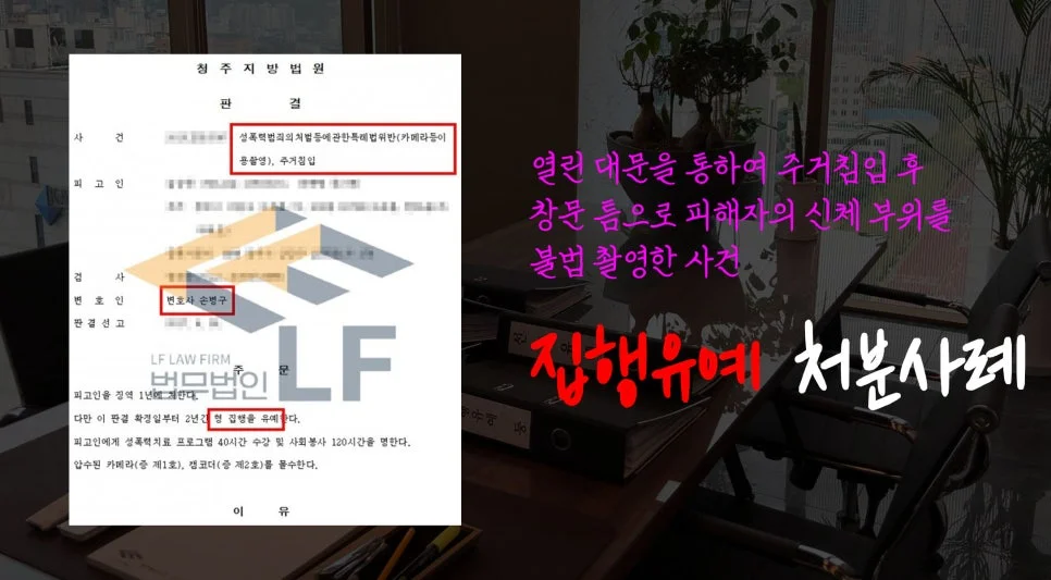 의뢰인은 피해자의 집 거실 창문을 통하여 피해자가 옷을 갈아입는 장면을 훔쳐보며 피해자의 알몸을 캠코더로 촬영할 생각으로 열린 대문을 통하여 담장과 거실 사이의 통로까지 들어가 자신의 캠코더를 이용하여 피해자의 가슴, 허벅지 등을 열려 있는 창문 틈으로 동영상을 촬영한 행동으로 카촬죄 혐의로 수사기관이 조사를 받게 되었습니다.