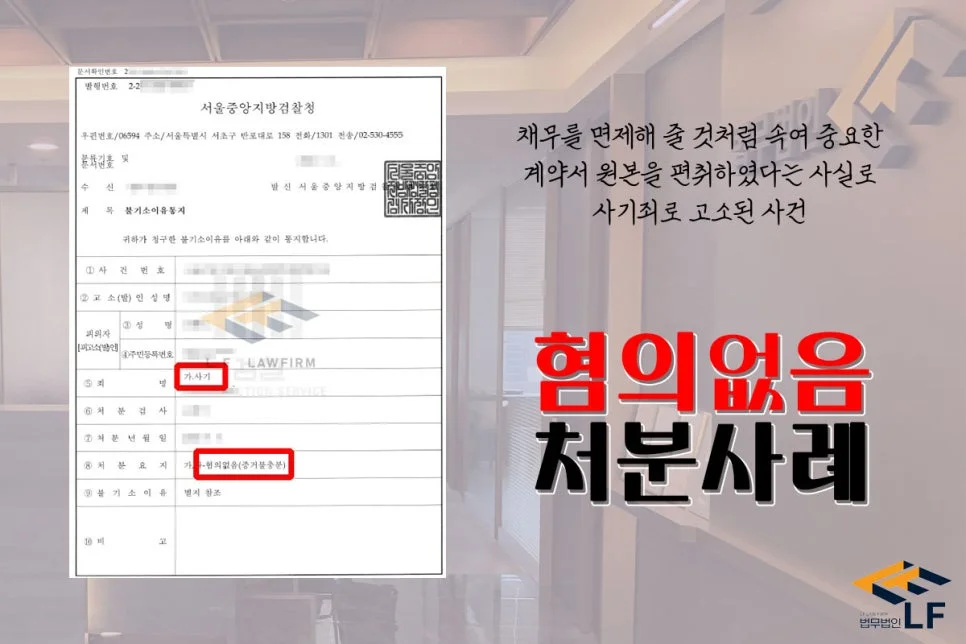의뢰인은 피해자로부터 계약서 원본을 건네 받은 것은 사실이나, 그 과정에서 피해자에게 결코 채무를 면제해 준다는 등의 이야기를 한 사실이 없다며 자신의 혐의에 대해 억울함을 토로하는 상황이었습니다. 그러나 의뢰인은 중요한 계약서 원본을 건네 받은 것은 사실이었기에 수사기관은 의뢰인을 의심하는 상황이었습니다.