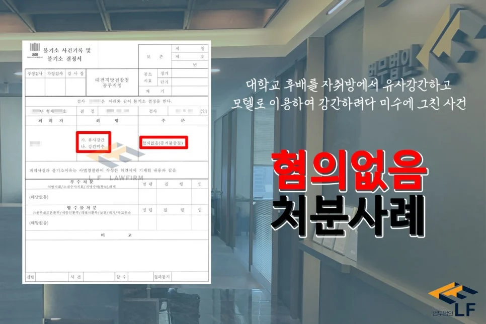 의뢰인은 대학교 후배와 자취방에서 술을 마시던 중 피해자의 음부에 손가락을 넣어 유사 강간하고, 이후 피해자를 모텔로 데려가 그 곳에서 피해자를 강간하려다 미수에 그쳤다는 사실로 고소를 당하였고, 이에 유사강간과 강간미수죄로 수사기관의 조사를 받게 되었습니다.