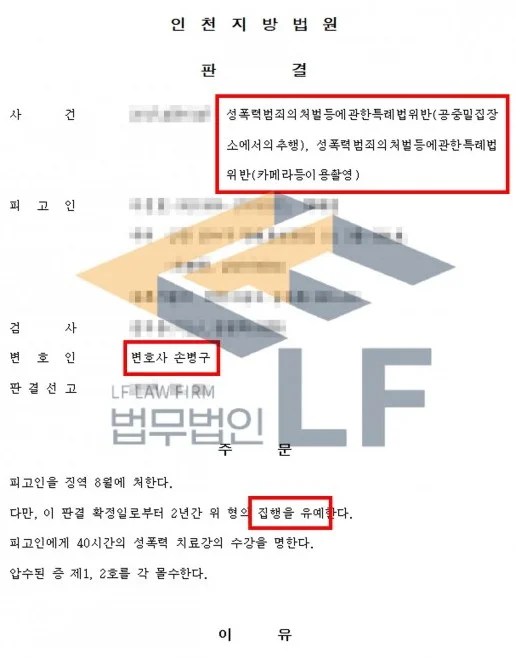 의뢰인의 자신이 근무하던 회사 여자화장실에 카메라를 설치, 같은 회사에 근무하던 여성들의 신체를 촬영하였으며 공중이 밀집한 장소에서 2회에 걸쳐 피해자를 추행하였기에 죄질이 매우 좋지 않게 판단되고 있는 상황이었습니다.