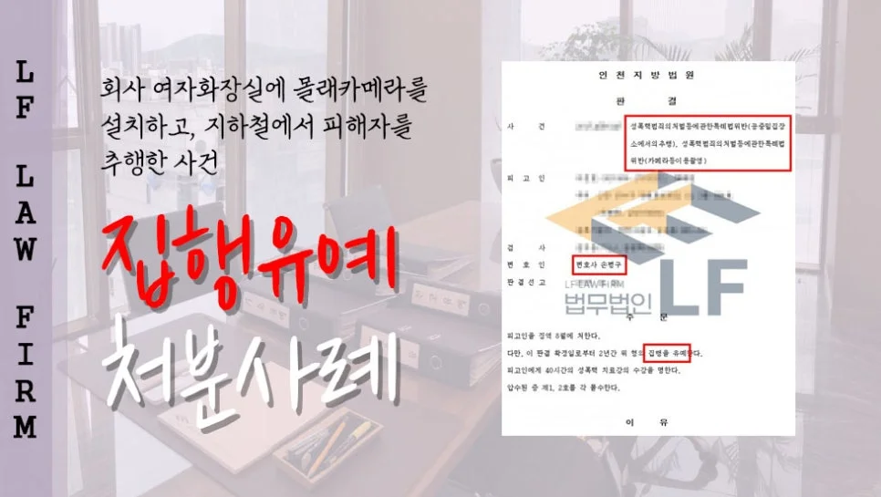 회사 여자화장실에 몰래 카메라를 설치하고 지하철에서 피해자를 추행한 사건