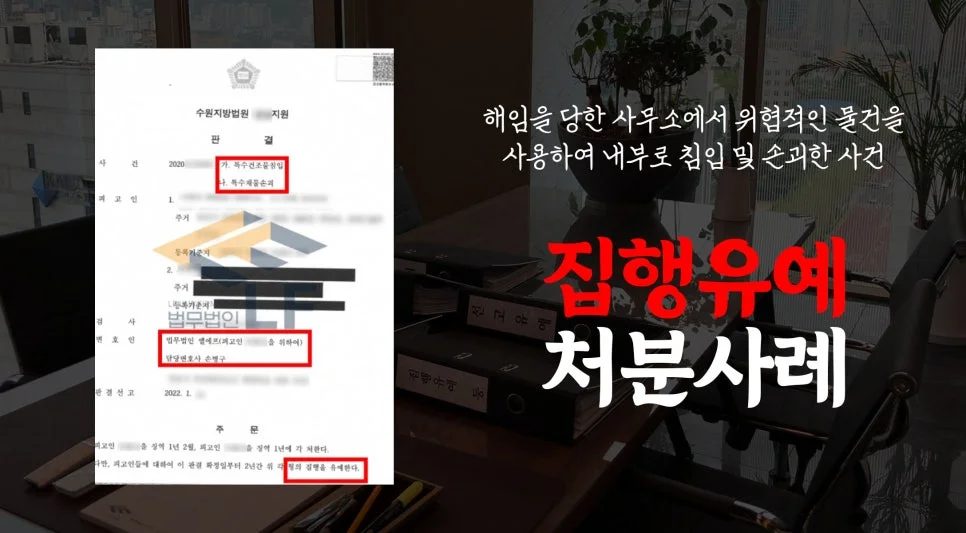 해임을 당한 사무소에 위협적인 물건을 사용하여 내부로 침입 및 손괴한 사건
