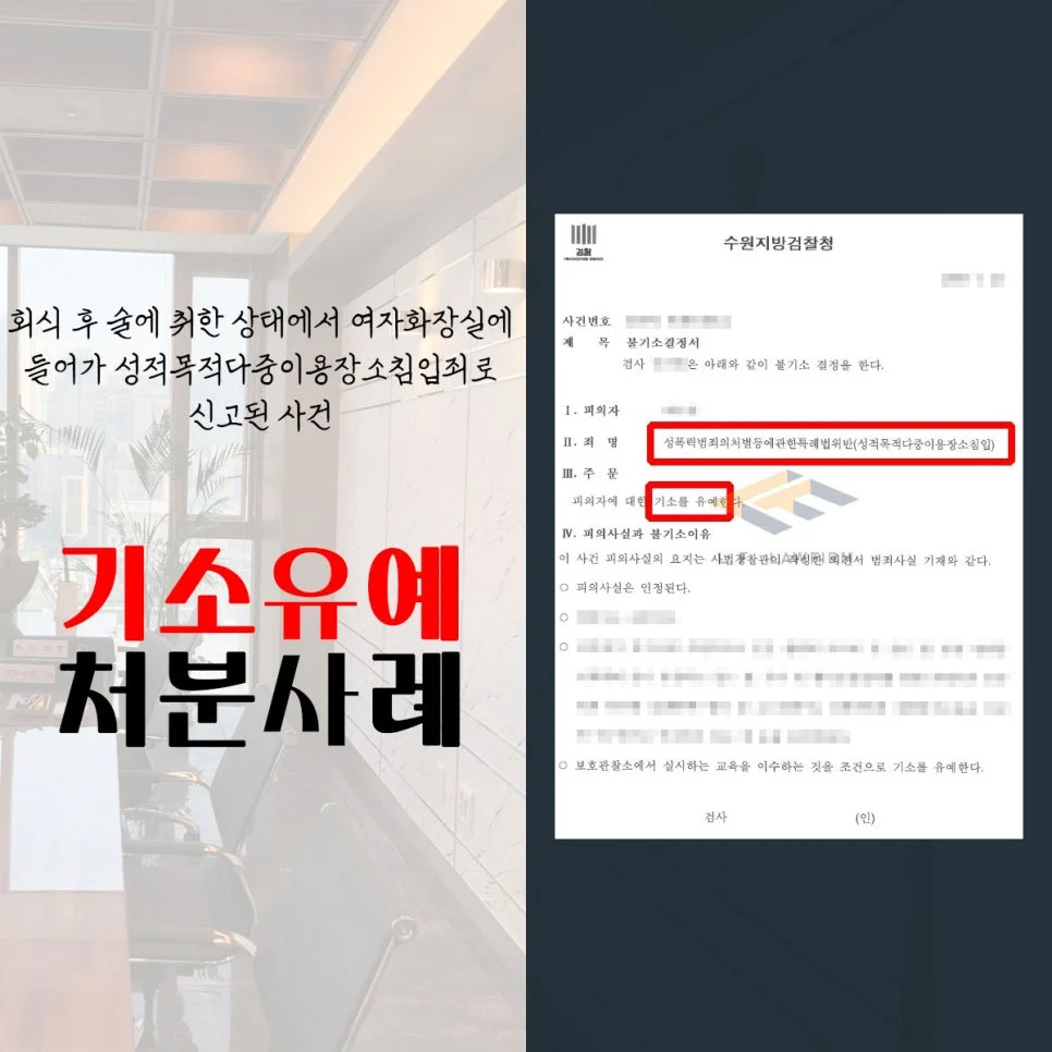 회식 후 술에 취한 상태에서 여자화장실에 들어가 성적목적다중이용장소침입죄로 신고된 사건