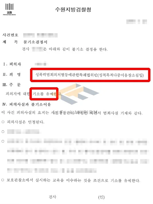 그래서 변호인은 이 사건의 목격자 겸 피해자와의 합의 및 의뢰인의 양형 자료를 받아 변호인 의견서를 통해 수사기관에 제출하며 의뢰인의 선처를 구하는 등 변호인 조력활동을 하여 기소유예를 받을 수 있게 되었습니다.