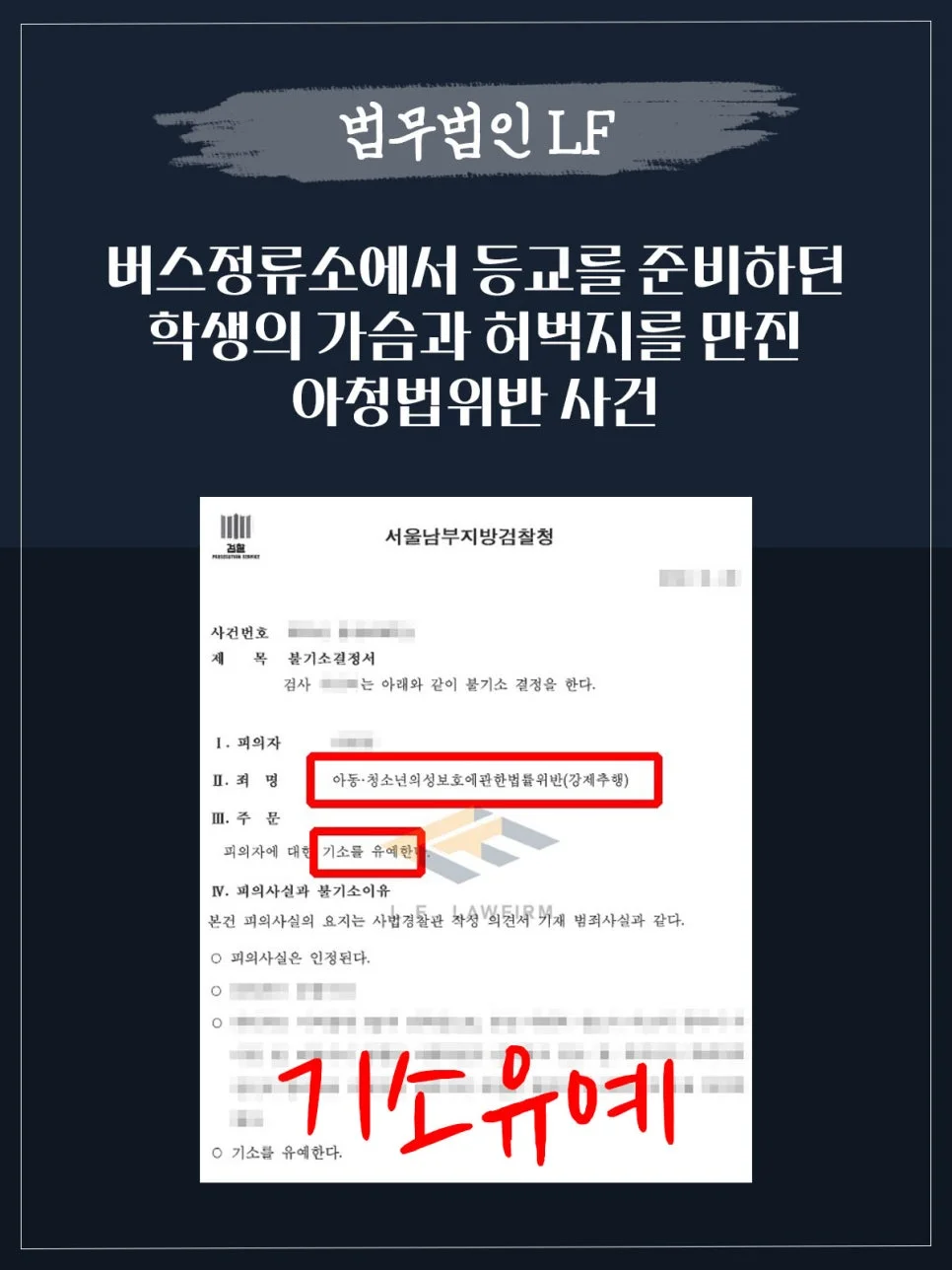 버스정류소에서 등교를 준비하던 학생의 가슴과 허벅지를 만진 아청법위반 사건