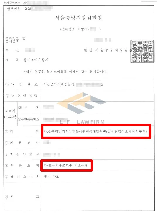 의뢰인은 자신의 범행사실을 모두 인정하고 있었으나, 이 사건은 공중이 밀집할 수 있는 장소인 사우나에서 성기를 만져 발생한 사건으로서 추행의 정도가 심해 처벌이 우려되는 상황이었습니다. 그래서 의뢰인의 사건을 맡은 변호인은 피해자에게 의뢰인이 사과하는 마음을 전달하고 피해자와 원만히 합의하였고, 이에 대해 의뢰인의 양형 자료들을 잘 수집한 뒤 변호인 의견서를 작성하여 수사기관에 제출하면서, 의뢰인의 선처를 변론해 기소유예를 받을 수 있게 되었습니다.