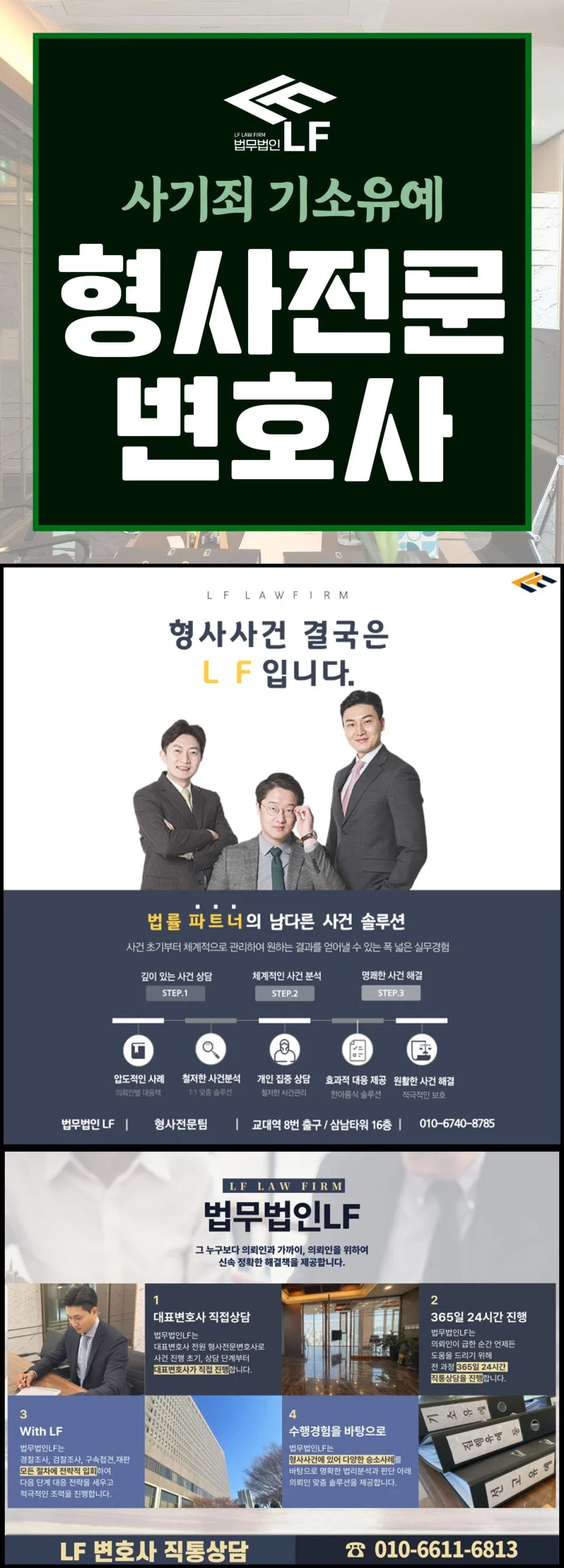 저희 법무법인 엘에프에서는 형사사건 혐의에 처벌 대상이 된 의뢰인 분의 상황을 깔끔하게 해결할 수 있도록 풍부한 사건 경험과 노하우를 바탕으로 단계별 맞춤 솔루션을 제공해드리고 있습니다. 만일 사기 혐의에 대하여 처벌을 받을 위기에 계시다면 저희 LF의 도움을 받아 불안함을 떨쳐 내보시길 바랍니다.
