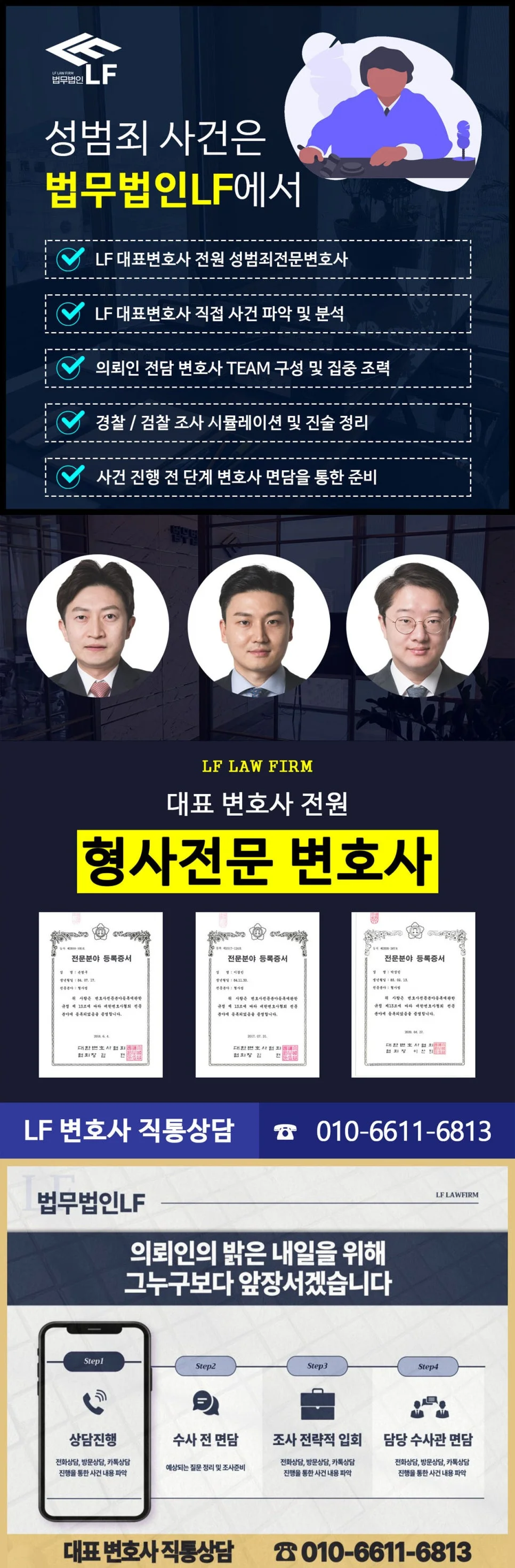 엄중한 처벌과 함께 별도의 처분 조치까지 내려지는 성범죄 혐의에 대해서는 초기 단계부터 혼자 대응하지 마시고 형사전문변호사에게 도움을 요청하셔야 합니다. 그리고 만일 해당 문제에 대하여 억울하게 조사를 받게 된 상황인 경우에도 무죄를 입증할 수 있는 확실한 자료와 수사과정에서 받을 질문에 대한 현명한 답변에 대해 적극적으로 법률적인 도움을 받아보는 것이 좋습니다.