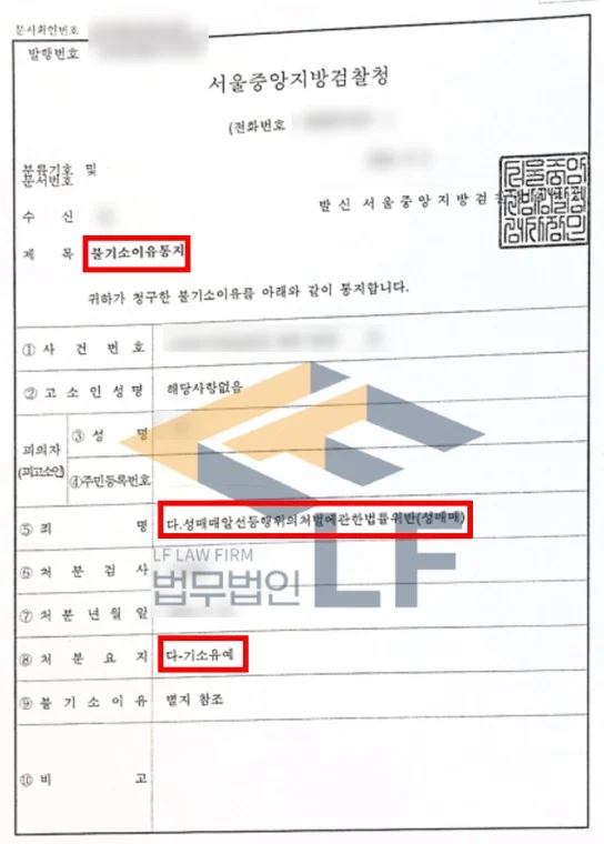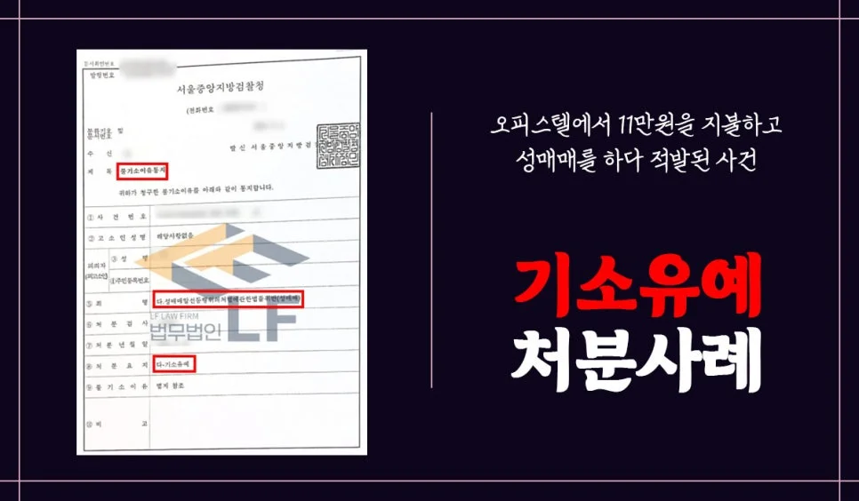 의뢰인은 11만원을 지불하고 오피스텔에서 성매매를 하다 현장 단속 중이던 경찰관에게 적발되어 성매매 혐의로 입건되었습니다. 의뢰인은 검찰로 송치된 이후 변호인의 조력을 요청하였으며, 자신의 범행을 모두 인정하고 잘못을 뉘우치고 있었으나 이전에 동종범죄이력 1회 적발된 상황이었으며 전과만은 피하고 싶어 하였습니다.