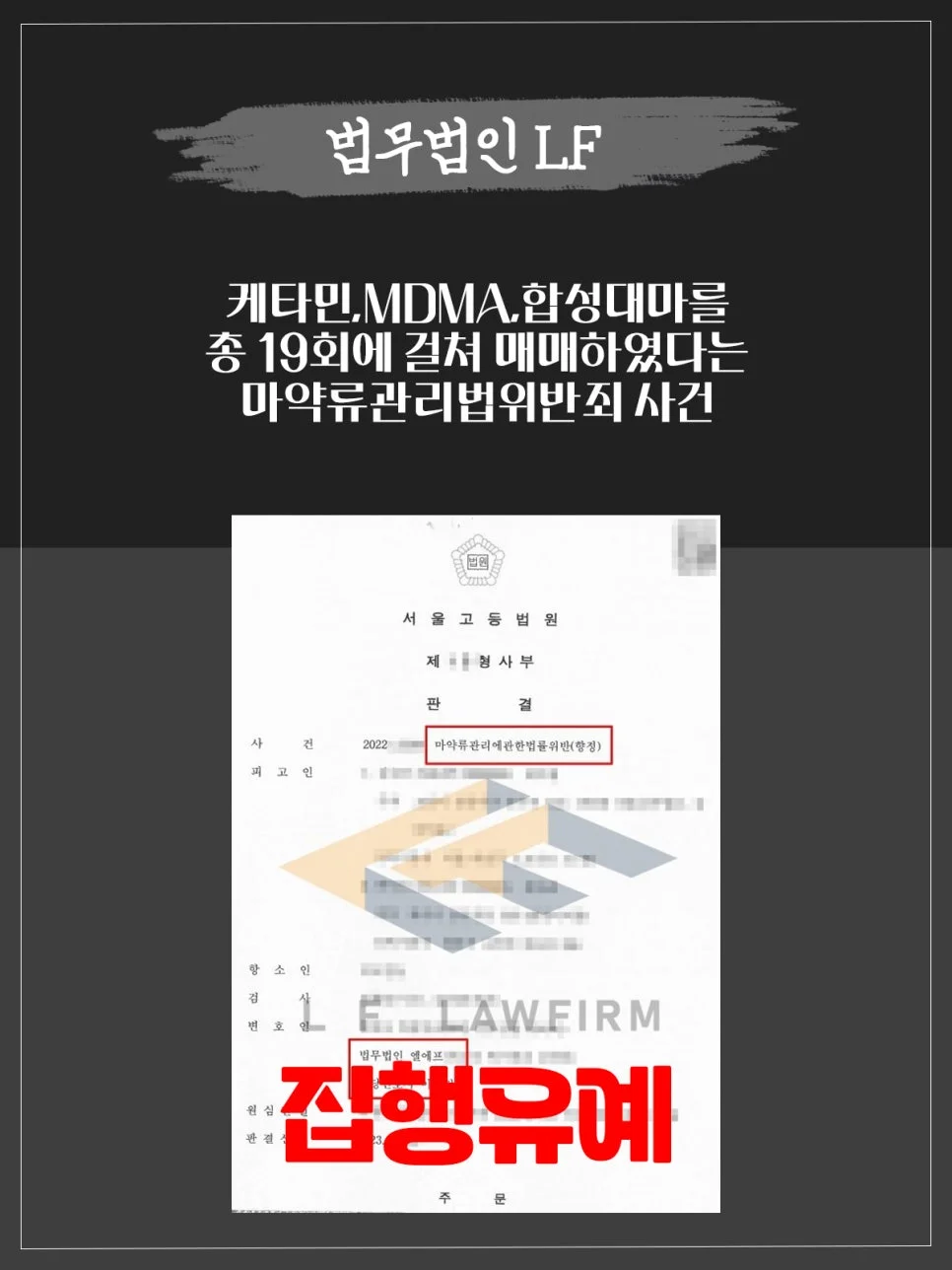의뢰인은 MDMA, 케타민, 합성대마를 총 19회에 걸쳐 매매하였다는 혐의로 1심에서 구속되었고 항소심에서 사건을 맡아 집행유예 판결을 받는 쪽으로 진행하였습니다. 마약류관리법위반죄로 형 선고시 구속 가능성이 높고 이후 재직에도 영향이 생기는 상황이었습니다.