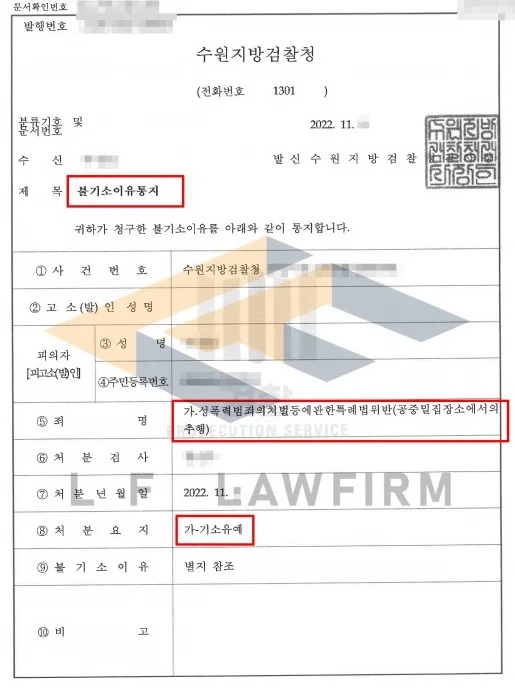 피해자의 변호사를 통해 합의 절차를 진행하는 한편 정상 자료를 안내하며 준비하였는데 반성문부터 시작하여 재범방지를 위한 자료가 준비될 수 있게 하여 변호인의견서를 제출하였습니다. 의견서까지 최종 전부 제출되고 나서 기소유예 처분을 받고 종결할 수 있었습니다.