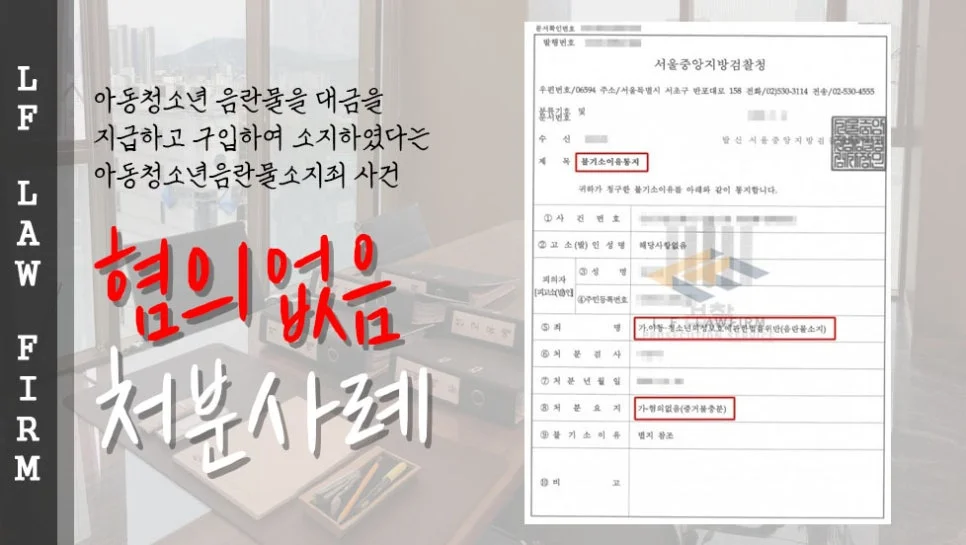 아동 청소년 음란물을 대금을 지급하고 구입하여 소지하였다는 아동청소년 음란물소지죄 사건