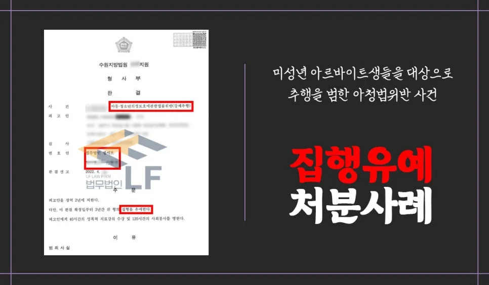 미성년 아르바이트생들을 대상으로 추행을 범한 아청법위반 강제추행죄 사건