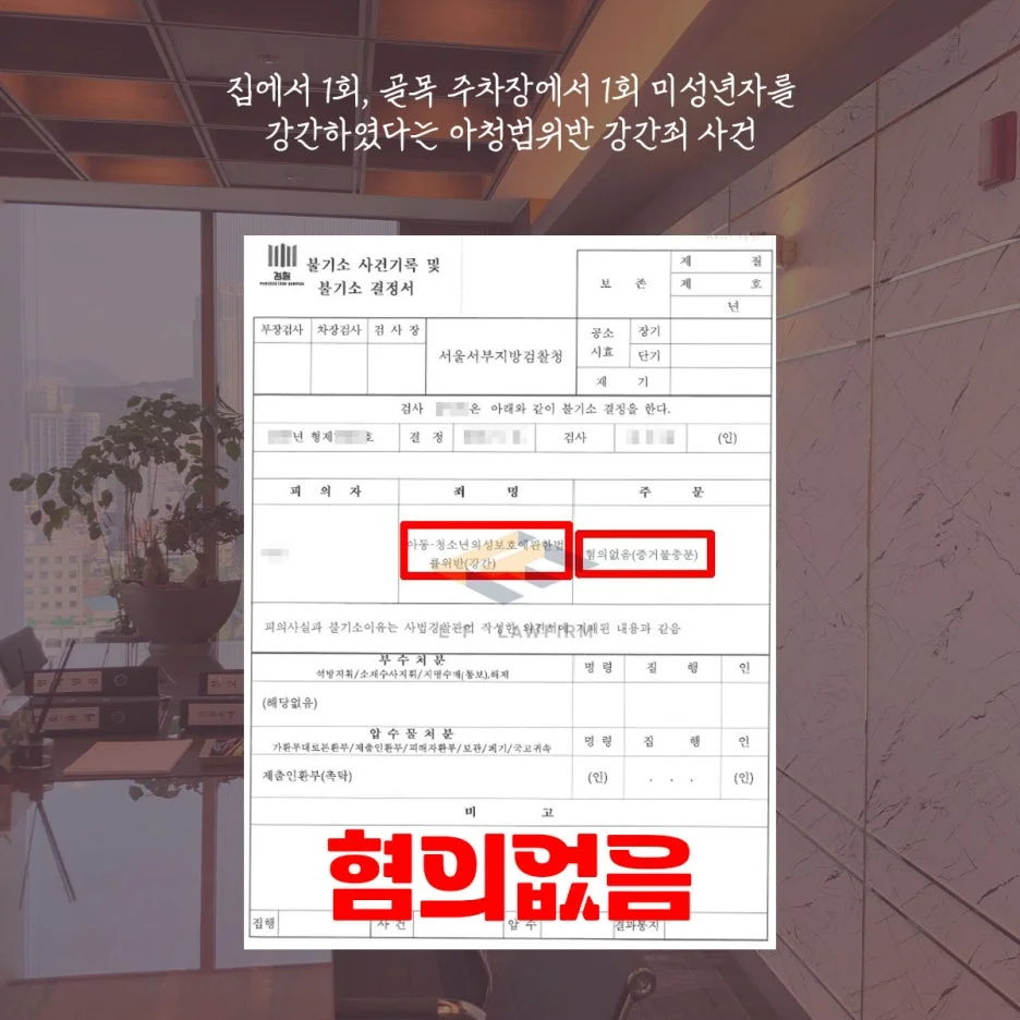 집에서 1회, 골목 주차장에서 1회 미성년자를 강간하였다는 아청법 위반 사건