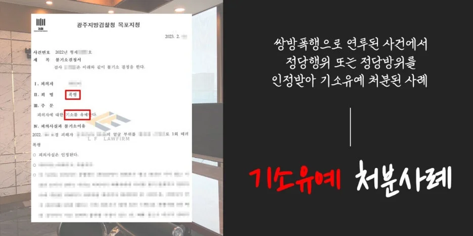 쌍방폭행으로 연루된 사건에서 정당행위 또는 정당방위를 인정받아 기소유예 처분된 사례