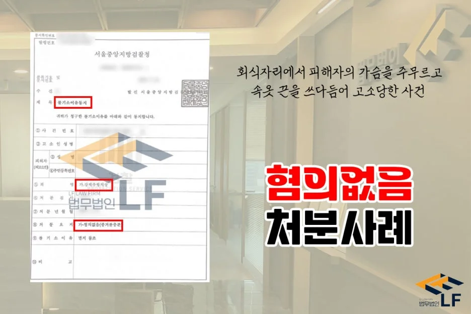 회식 자리에서 피해자의 가슴을 주무르고 속옷 끈을 쓰다듬는 등 강제추행치상으로 고소당한 사건
