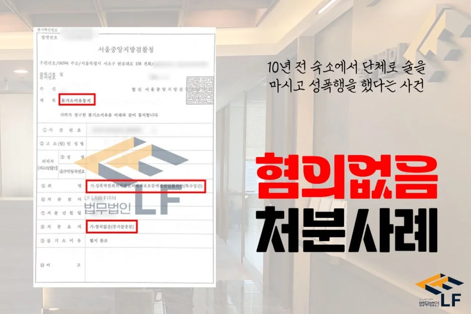 의뢰인은 10년 전 중학생 시설에 친구들과 숙소를 예약하여 술을 마셨고 술에 취한 피해자를 단체로 성범죄를 범하였다는 혐의로 고소 절차가 진행되어 조사받게 되었습니다. 의뢰인은 당시에 친구들과 술을 마신 사실은 인정하지만, 피해자에게 강간한 적이 없다고 주장하였습니다. 그리고 오래전에 있었던 사건에 대한 증거를 수집하기에 다소 어려움이 있어 처벌받게 될지 우려하고 있었습니다.
