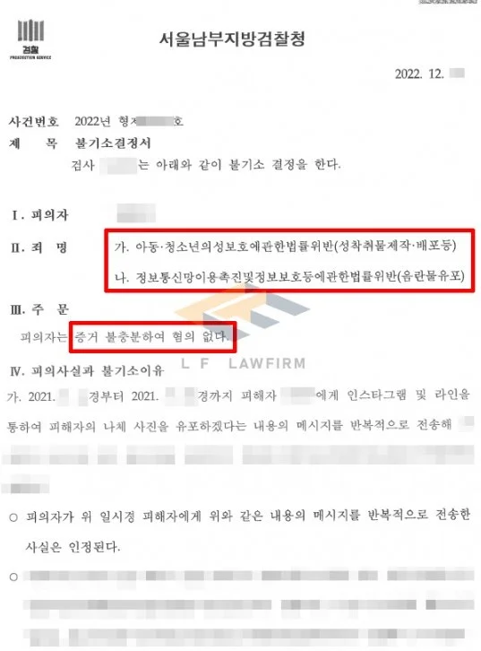 의뢰인은 인스타그램 라인과 같은 SNS를 이용하여 미성년자 등을 대상으로 성착취물을 제작하고 배포하였다는 사실로 고소를 당하였고 이에 성착취물제작 및 배포 혐의로 수사기관의 조사를 받게 되었습니다.
