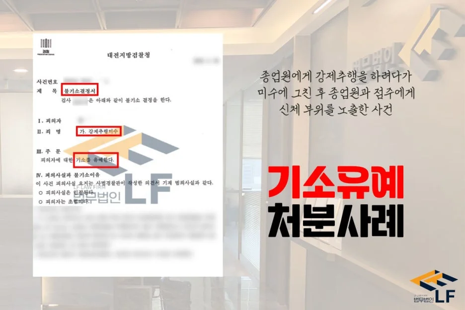 의뢰인은 술집에서 종업원에게 키스하고 엉덩이를 만지려는 행동과 “함께 자고 싶다. 집에 가자”라는 말을 꺼내며 계속해서 강압적으로 강제추행을 하려고 하였습니다. 그때 점주가 다툼을 말려 강제추행이 미수에 그쳤고 의뢰인은 옷을 벗어 난동을 부리다가 수사기관으로부터 조사를 받게 되었습니다.