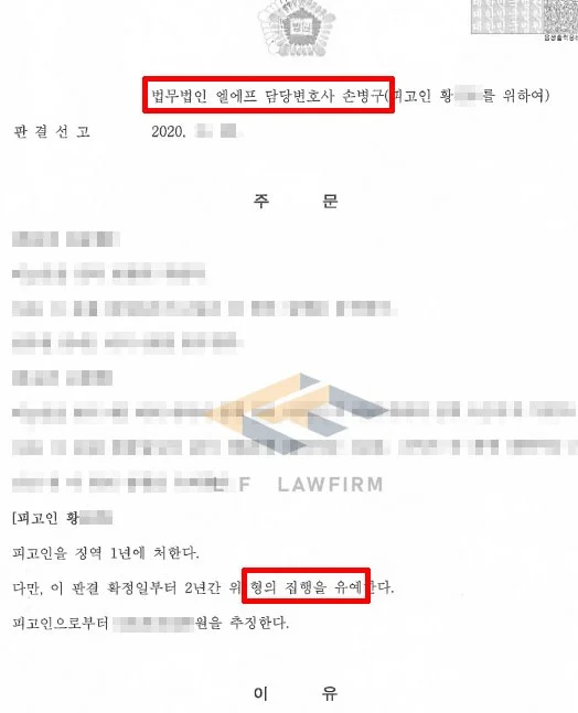 그래서 변호인은 의뢰인에게 유리한 양형 자료들을 잘 수집한 뒤 변호인 의견서를 작성하여 법원에 제출하였으며, 의뢰인이 현재 처한 상황을 매우 구체적으로 잘 설명하여 의뢰인에 대한 선처를 구한 결과 집행유예를 받을 수 있게 되었습니다.