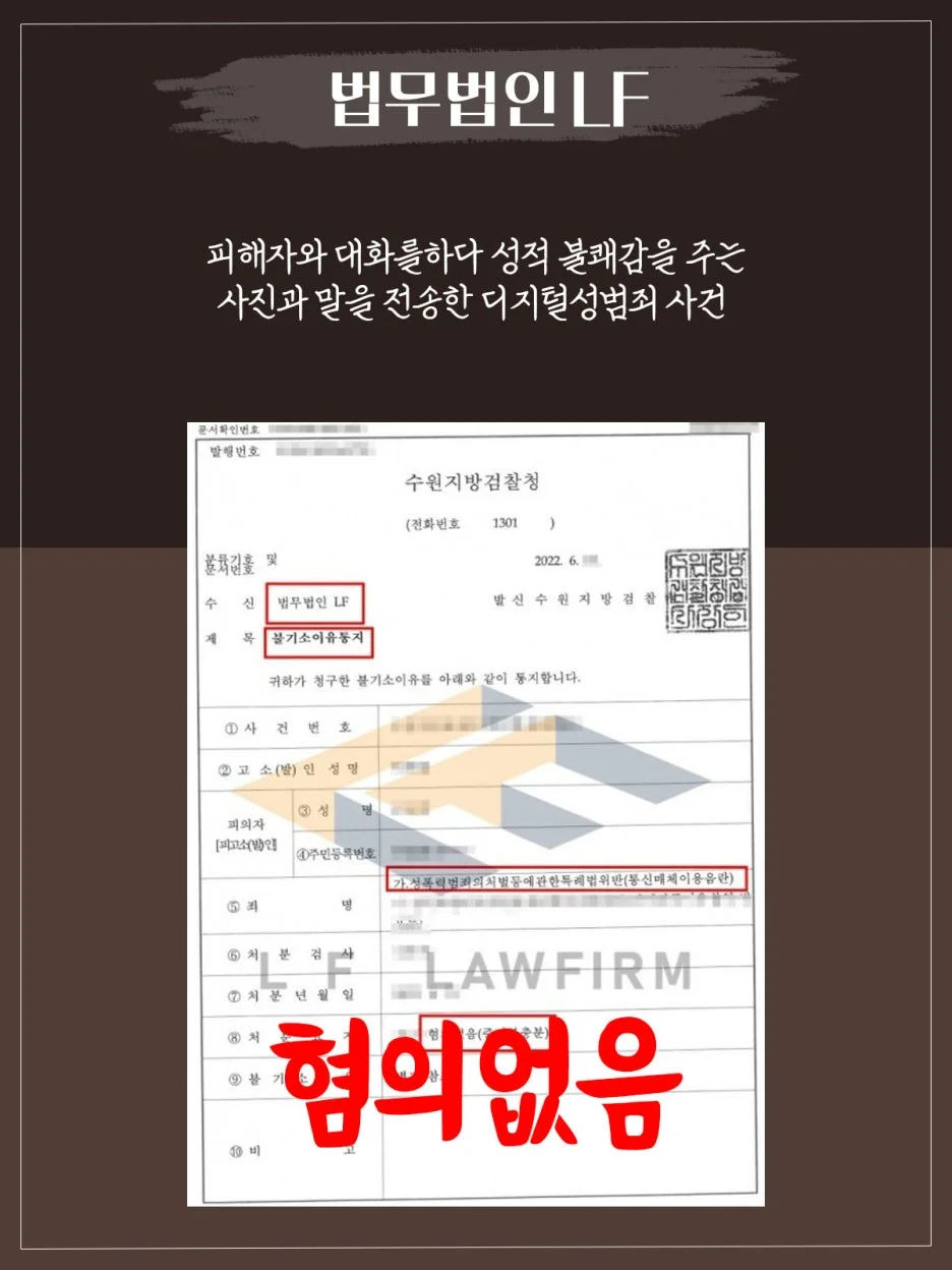 해당 혐의에 유죄로 인정될 경우 처벌 수위에 따라 신상정보 등록이 될 수 있고 취업에도 영향이 생길 수 있는 상황이었습니다. 의뢰인은 피해자와 아는 사이였고 둘이 대화를 하다 해당 사진과 말을 전송하게 된 계기가 중요해 보였습니다.