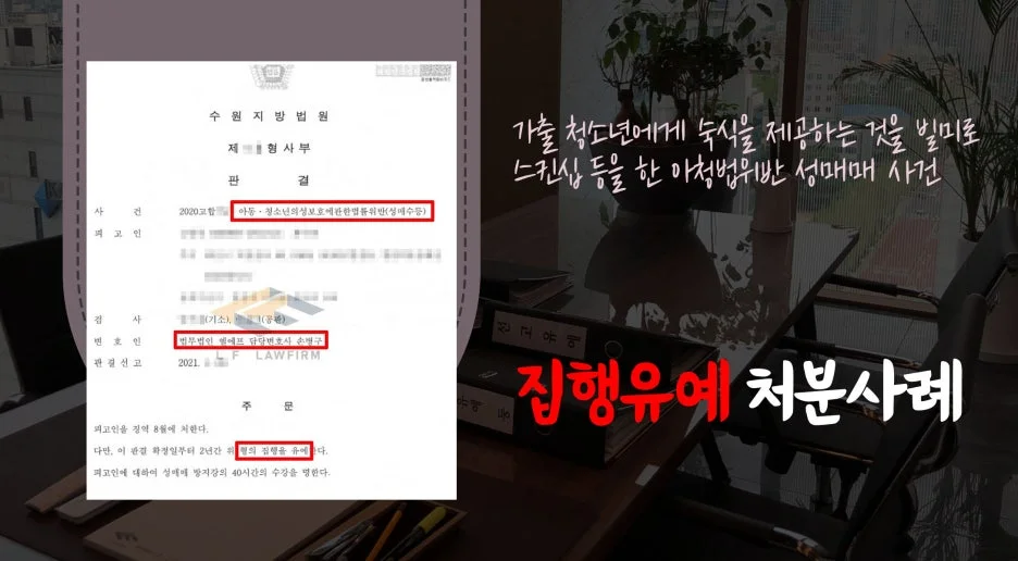 의뢰인은 이 사건 범죄 사실을 모두 인정하고 있었으나, 이 사건 범행은 가출 청소년인 미성년자를 대상으로 숙식을 제공해 준다는 것을 빌미로 성매수를 한 죄질이 매우 좋지 않은 사건으로서 의뢰인에게 강한 처벌이 예상되는 상황이었습니다.