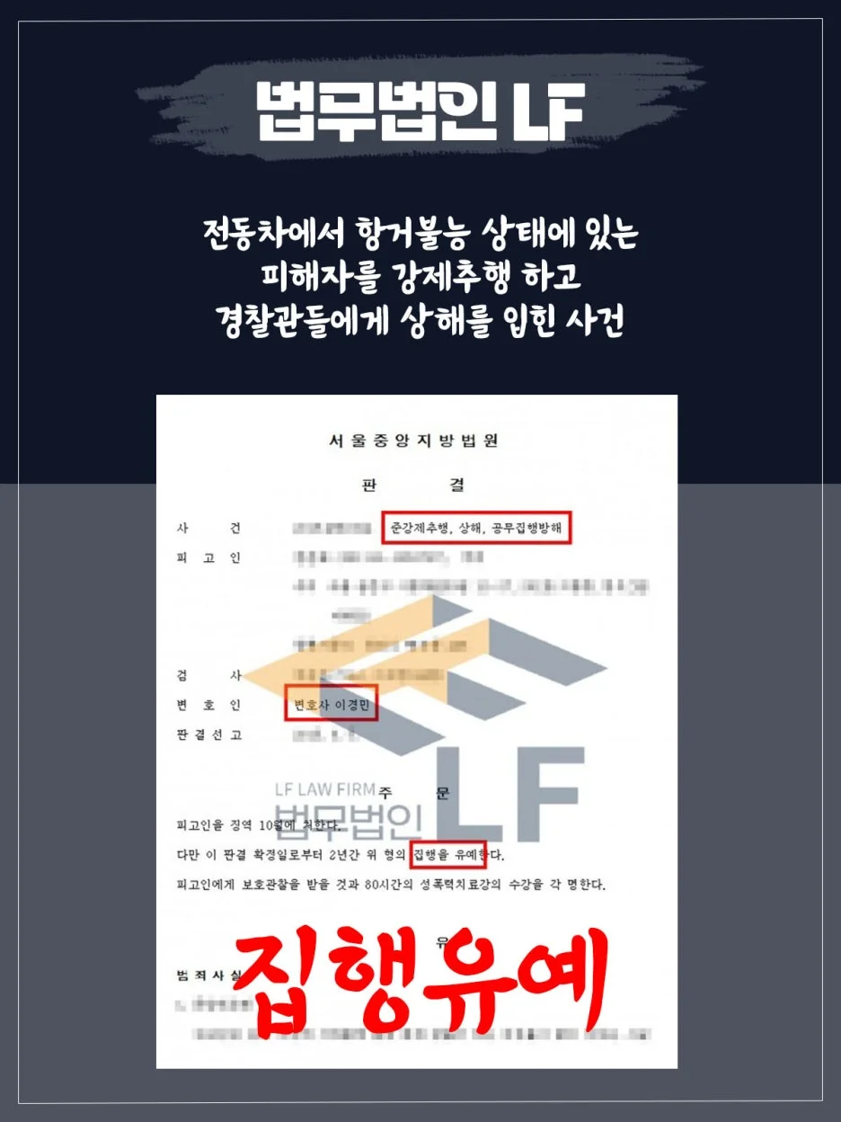 그러던 중 지하철 경찰대 소속 경찰이 이를 목격하게 되었고 현행범으로 체포하려고 하자 수갑을 차지 않기 위해 발로 경찰관들을 걷어차는 등 손등과 손바닥 부위에 찰과상을 입혀 준강제추행과 함께 공무집행방해, 상해죄로 기소되어 재판을 받게 되었습니다.