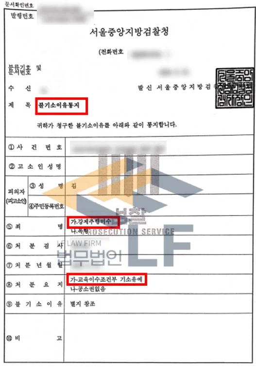 그래서 사과문을 통해 원만한 합의를 진행하는 데 조력을 드렸고 강제추행미수에 대해서는 피해 회복에 힘을 실었습니다. 그리고 피해자의 처벌 불원서와 앞으로 문제를 일으키지 않겠다는 다짐을 담은 변호인 의견서를 제출하였습니다. 이와 같은 조력을 하여 강제추행미수 부분에 기소유예를 받을 수 있게 되었습니다.