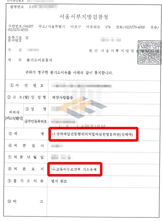 그러나 이 사건은 돈을 주고 성을 산 중한 범죄 사건으로 무엇보다 재범을 하지 않을 것이라는 확실한 노력이 매우 중요해 보였습니다. 그래서 변호인은 의뢰인의 정상관계 자료 등을 받아 변호인 의견서를 수사기관에 제출하며 선처를 구하는 등의 변호인 조력 활동을 하게 되었습니다. 이와 같은 적극적인 조력활동으로 해당 사안에 대해 기소유예를 받을 수 있게 되었습니다.
